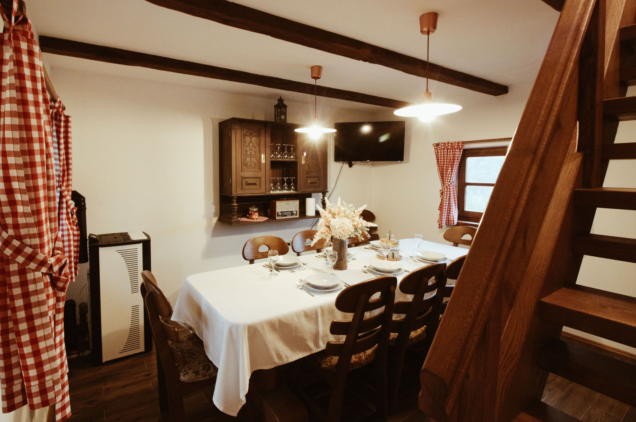 Cabana Dobra je pažljivo uređena kućica koja spaja rustikalni šarm drva s modernim komforom. Svaki detalj osmišljen je kako bi vaš boravak bio poseban — od ugodno uređenog interijera do prostrane terase s pogledom na šumu i rijeku.